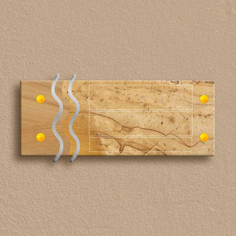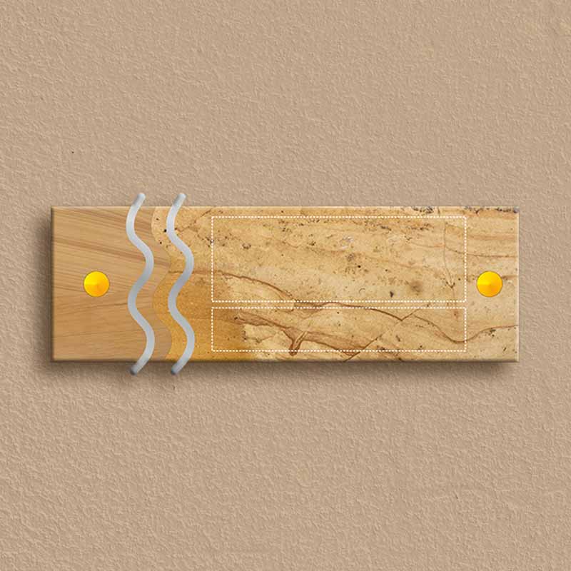 Enhance the entrance of your home or apartment with the Designer Nameplate, a premium blend of natural stone and modern design. Crafted with Yellow Jaisalmer Teak Sandstone and accented with high-quality stainless steel letters, this nameplate exudes elegance and durability.